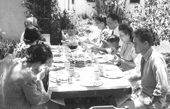 1940's from left - Virginia Leipper, Diane Leipper, Mari Stitt, Myrtle Leipper, Karen Grosse, Leah & Al Grosse, unknown boy & woman, Dean stitt |