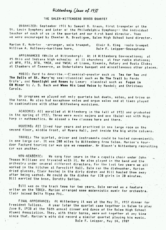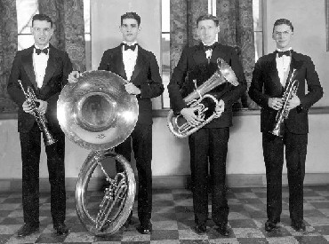 Quartet - They played together through high school & college. From left, Marion McArtor, Dale Leipper, Bill Holloway. Clair King