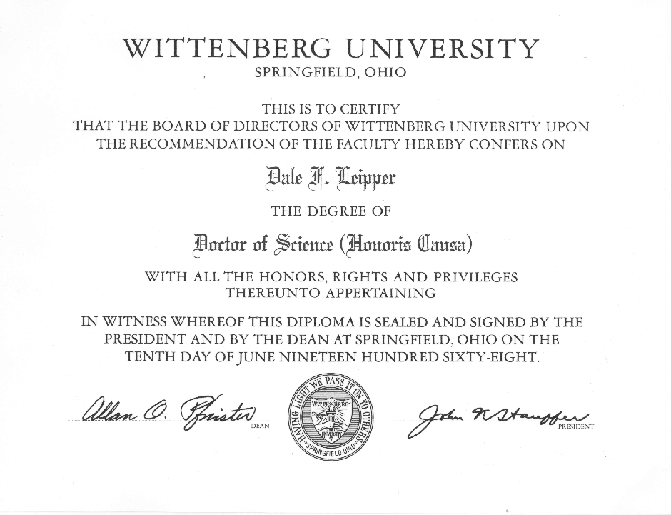 1968 - Dale receives Honorary Degree from Wittenburg