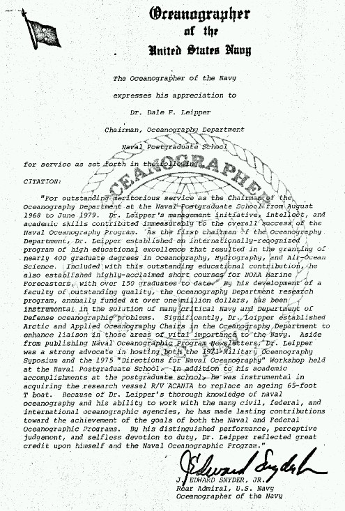 Citation from the Oceanographer of the Navy.
