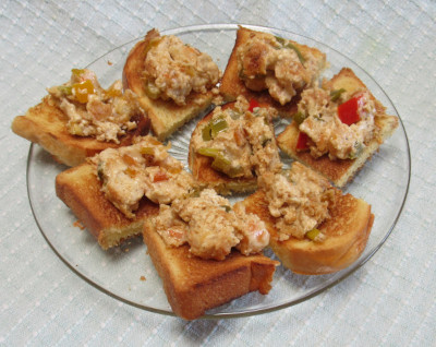 cajun shrimp dip -|- cranberry balls -|- Sun-Dried Tomato & Roasted Red Pepper Dip -|- Cranberry Cream Cheese Spread -|- mushroom croustades. -|- crostini with sun-dried tomatoes -|- Salami and cream cheese roll-ups -|- salami toasted with cheese -|- corned beef hash patties |