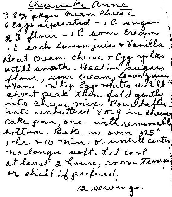 After baking, top each cheesecake with canned cherry pie filling (one can, 3-4 cherries per cheesecake). Makes about 24.