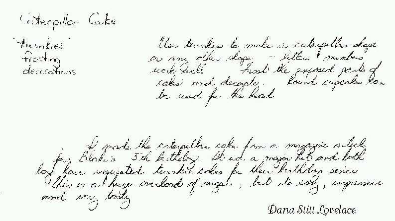 A very old recipe given to Dana and Chris as a wedding gift 1972 by Elizabeth Hill DeYoung in Knoxville, Tenn., a relative of Chris' – MLS