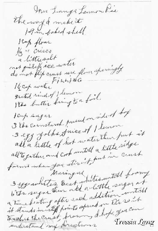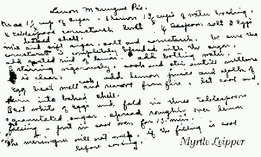 Mother (Jo Harrison) made exceptional Lemon Meringue Pie. I think this is one pie that she used the wire whip to beat the egg whites. VHL |