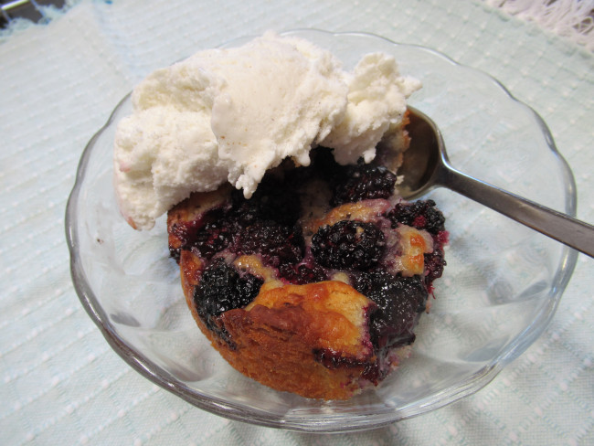 Another very good memory related to cobblers is our Sunday outings while living in Texas. We would head out for the wild blackberry patches and spend an hour or two picking berries. Often competing with snakes or turtles. We'd bring home bucket fulls and eat them with ice cream or Mom would make a cobbler. Mom also made jam out of the berries. - DLL |