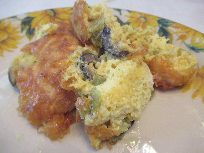 Variations - I have used canned green chilies for this recipe and for a little extra zing I sometimes use a can of Ro-tel tomatoes and green chilies. Sometimes I use one can of green chilies and one can of Ro-tel. I also add chopped black olives on occasion. To make it simple, I often add all the ingredients together, mix it up and pour into the baking pan. All variations have turned out very well. - DLL |