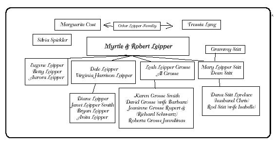 Note - An addition to the 2003 print edition to the Family Recipe Book were pages depicting the marriage of Robert & Myrtle Leipper, Bryan & Jo Harrison and Dale & Virginia Leipper. The impetus for this was the wedding of Brittany Smith and Tim Adair. The pictures on this page are part of that effort. |