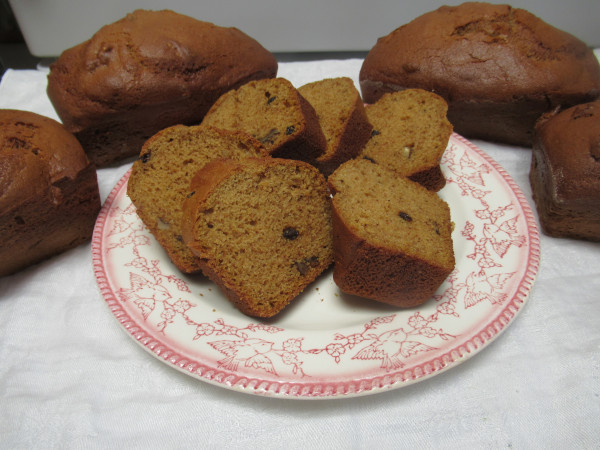 Bake at 350 degrees 1 hour to 1 1/4 hour in 2 loaf pans, greased and