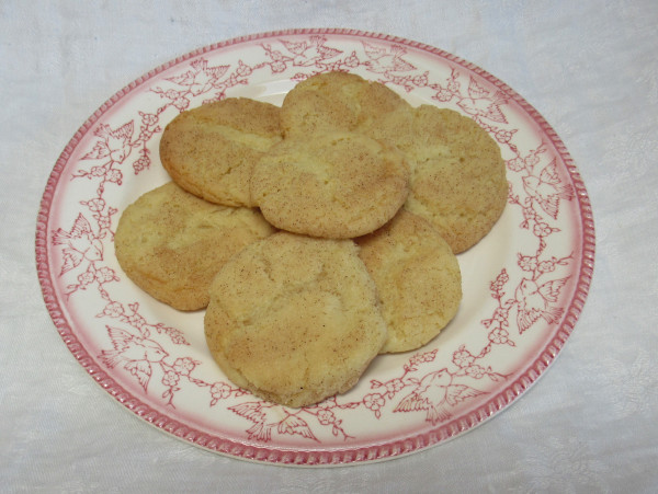 nickerdoodlesMix together thoroughly the shortening, sugar and eggs. Sift together the flour, cream of tartar, soda and salt and stir into the sugar mixture. Chill dough. Roll into balls the size of small walnuts. Roll in mixture of 2 Tablespoon sugar and 2 teaspoon cinnamon. Place about 2" apart on ungreased baking sheet. Bake until lightly browned, but still soft. (these cookies puff up at first, then flatten out with crinkled tops.) 400 degrees for 8 to 10 minutes. About 5 dozen 2" cookies.