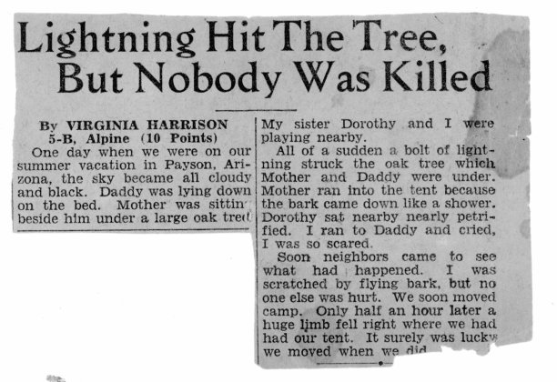 I am not sure how old Mom was when she wrote this. Sad to say only the article was saved not the name of the publication or the date. This is a story I have heard from as far back as I can remember. Mom never mentioned that it was published. |