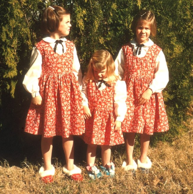 Mom made many of our clothes from the time we were very little until we were almost out of high school. She also made dance costumes for Janet and me. This was often a real challenge as the Guerrard's were professionals with long careers as ballet dancers in a well known company. They would draw the design for each costume, specify the materials and details then expect each girls costume to meet their standards and look exactly the same. It seemed that when I was going through the most growth and change in body shape is when the costumes were the most complicated. One in particular gave Mom nightmares. It was a gold material that had metallic threads in it. It would shred very easily. We had more performances with that costume more than any other Mom ever made. It seemed that each time I had to wear it I had changed shape and Mother had to adjust the costume and each time she had to be careful that it didn't fray. Also there was no extra material use if needed.